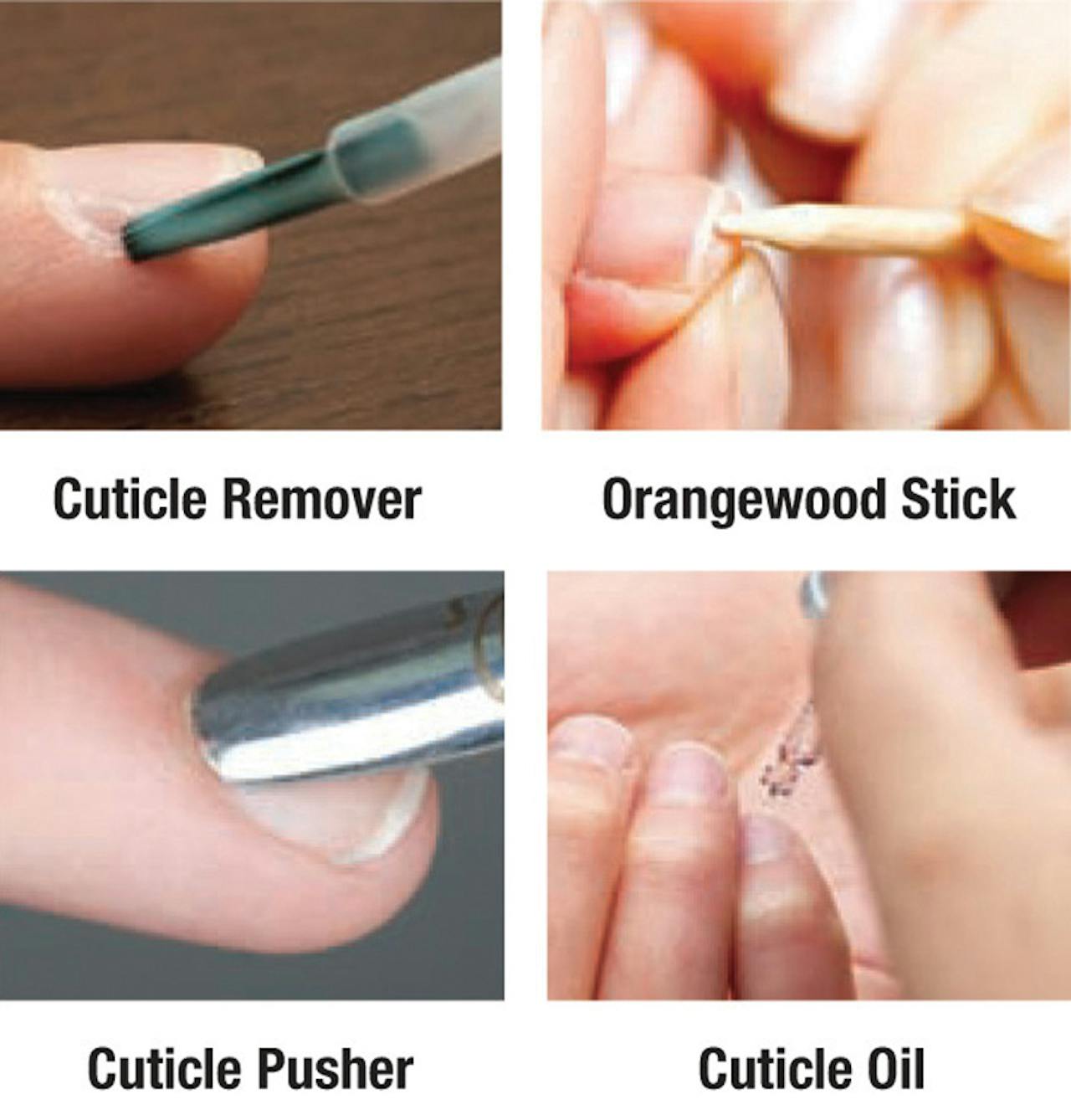 Like I said the best kind of cuticle removers to use are the ones that sit right there and they dont run onto the nail. The downside to using orangewood sticks is that they cannot be disinfected. With clippers trim nails straight across and even with the tip of finders.